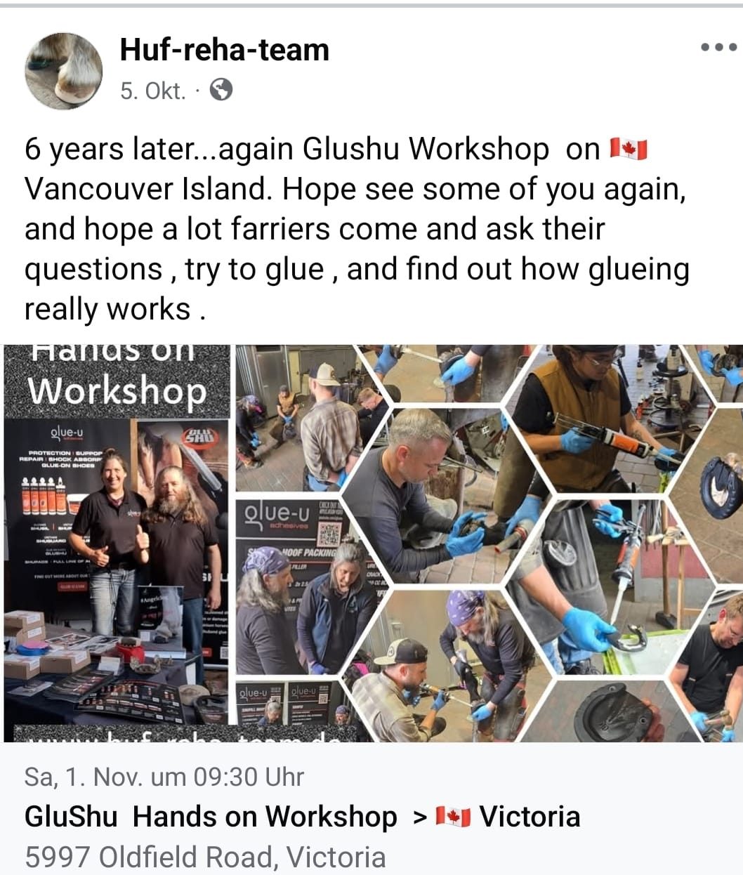 In der Hufbeschlagschule Kos in Schleswig-Holstein. Es ist uns eine Freude ,das kleben von Glushu und die Verwendung von modernen Materialien mit den angehenden Hufschmieden zu üben.