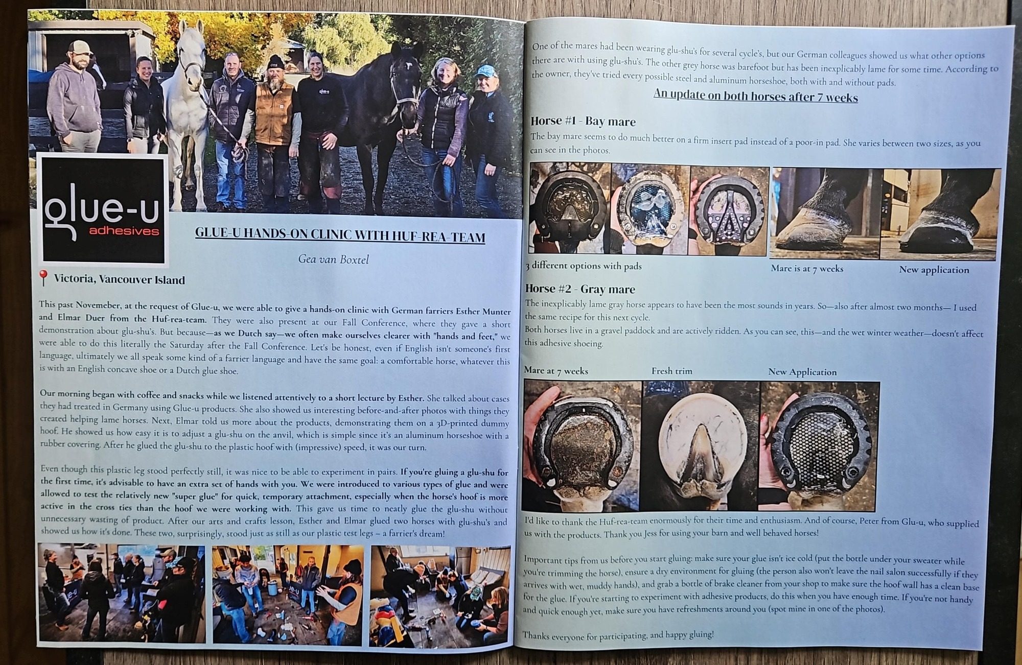 In der Hufbeschlagschule Kos in Schleswig-Holstein. Es ist uns eine Freude ,das kleben von Glushu und die Verwendung von modernen Materialien mit den angehenden Hufschmieden zu üben.